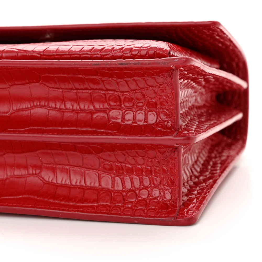 Saint Laurent Medium Sunset Bag Rouge Eros Embossed Monogram Calfskin & Crocodile Leather Silver Hardware