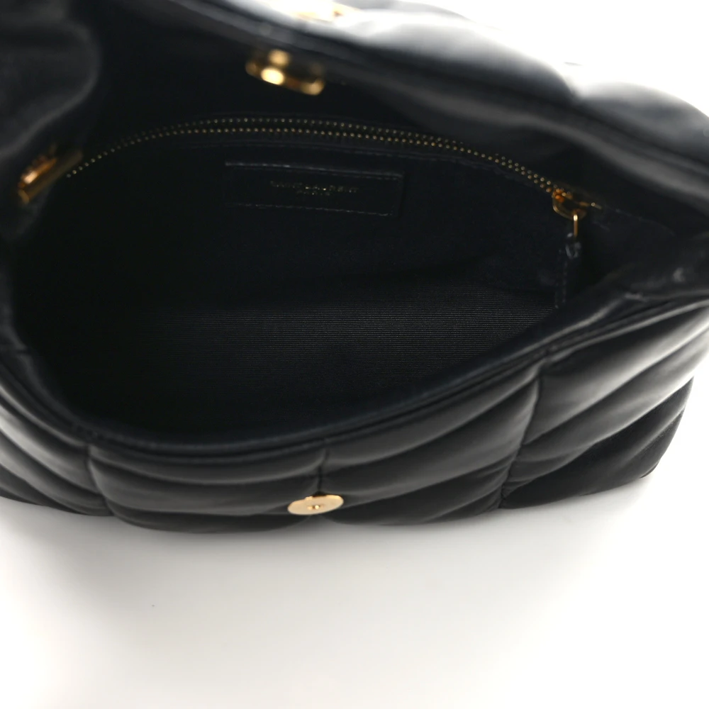 Saint Laurent Mini Loulou Chain Satchel Black Quilted Puffer Monogram Lambskin Leather Ruthenium Hardware