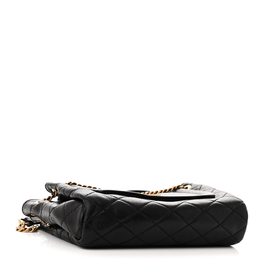 This Mini Nolita in Black is crafted from Quilted Monogram Lambskin Leather with aged gold hardware. Its compact size is perfect for essentials, while the luxurious material adds a touch of sophistication. A stylish choice for casual outings or evening events.