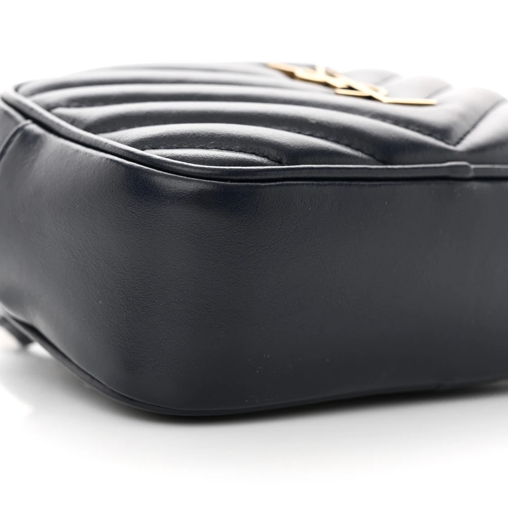 • Saint Laurent Small Lou Belt Bag Deep Marine Monogram Calfskin Matelasse Leather Gold Hardware