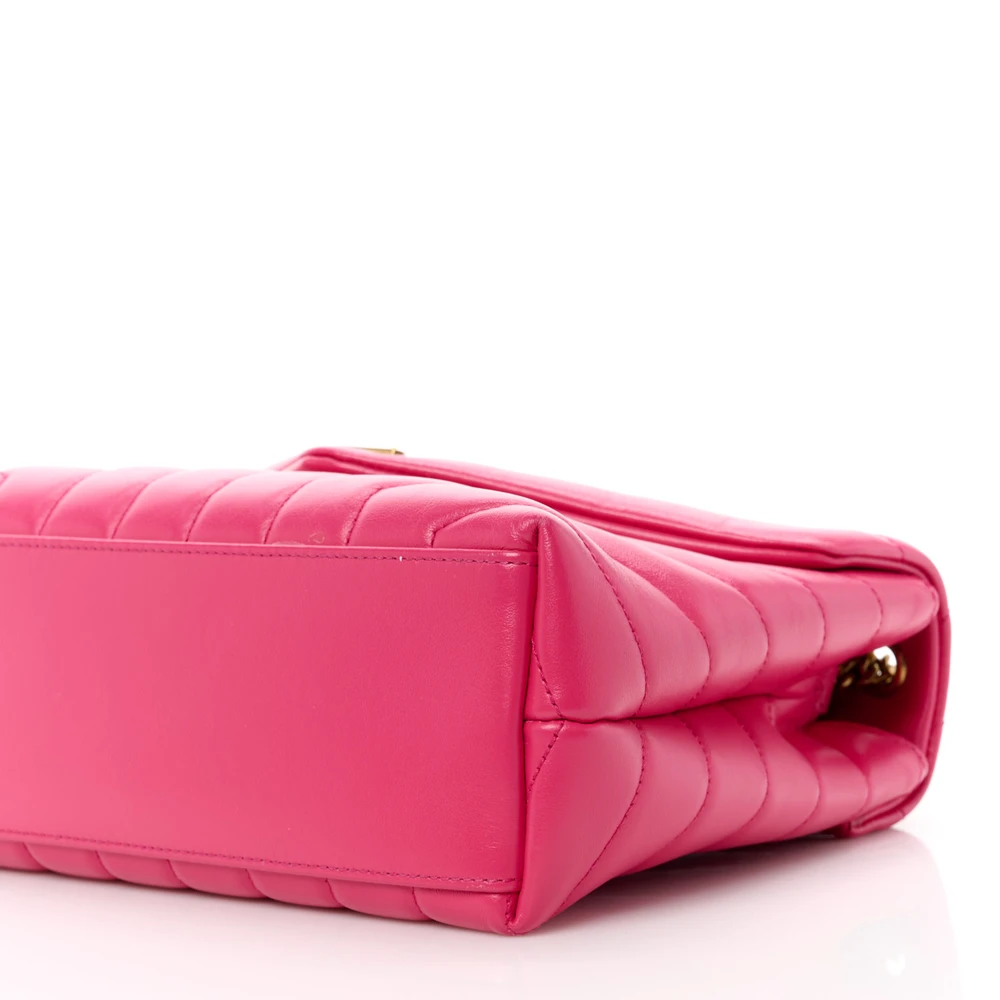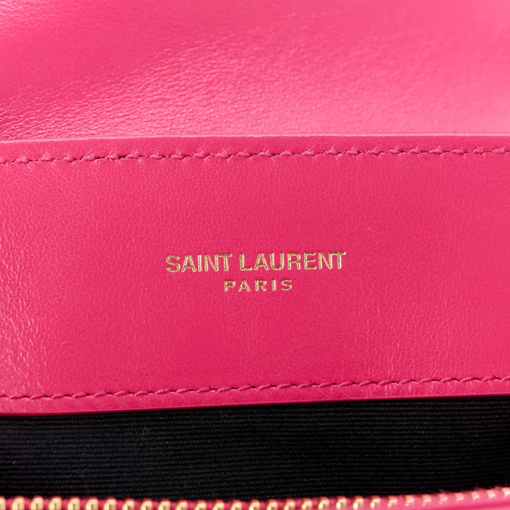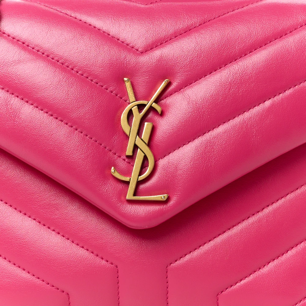 • Saint Laurent Small Loulou Chain Satchel Fresh Fuchsia Y-Quilted Monogram Calfskin Leather Gold Hardware