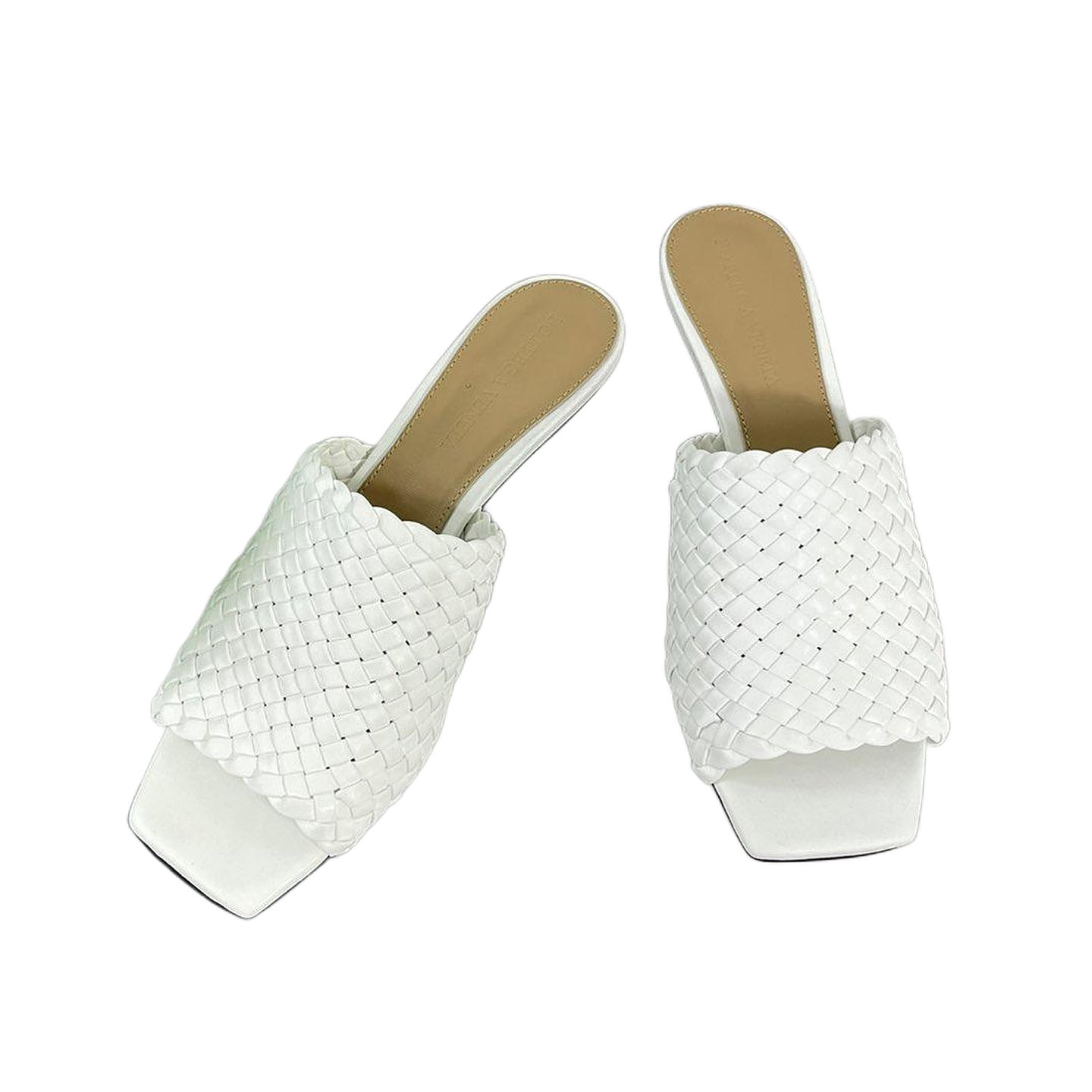 Bottega Veneta Knot Mule In White Intrecciato Leather Mule With Signature Metal Knot Heel (Heel Height 4.5cm)