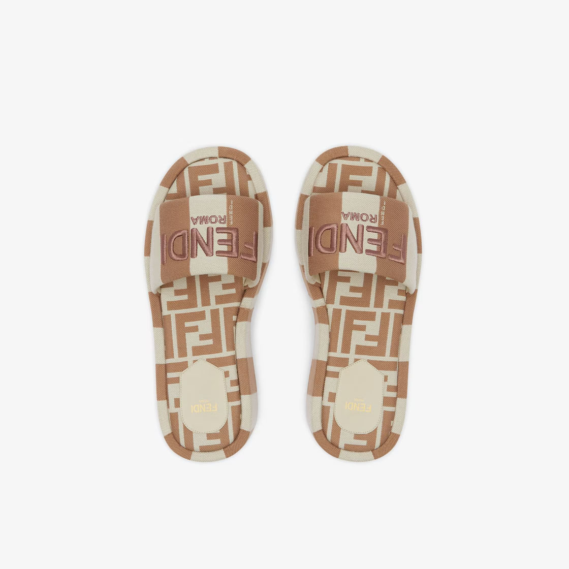 FENDI Beige canvas platform sandals slippers