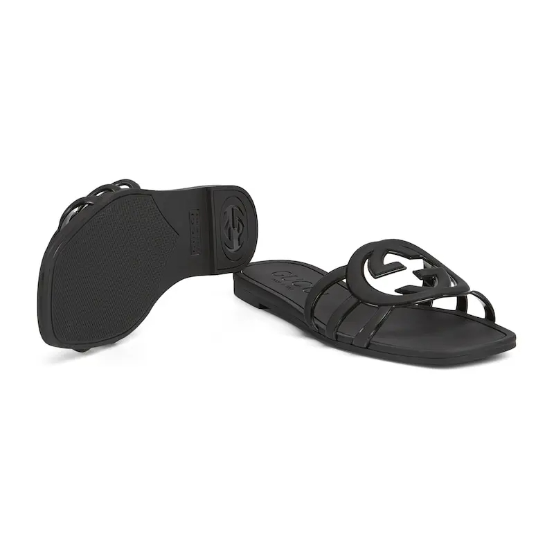Gucci square head black flat bottom slippers