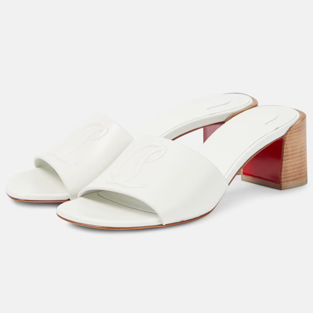 Christian Louboutin Pink leather round toe chunky heel sandals