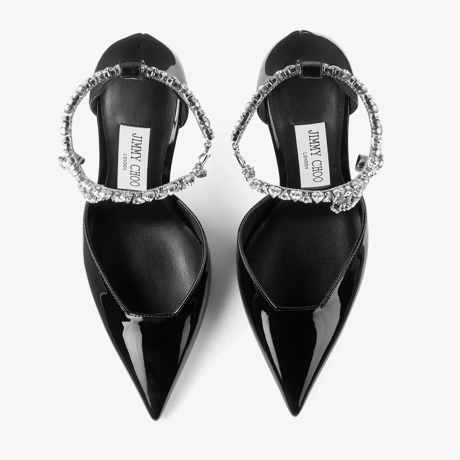JIMMY CHOO Black patent leather crystal lace Muller shoes slippers