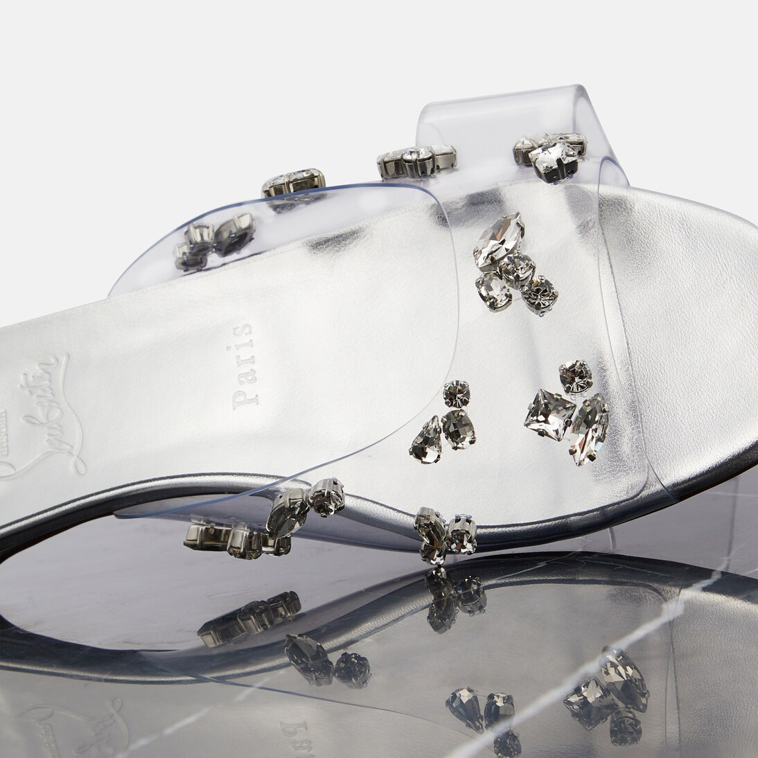 Christian Louboutin Silver transparent sash flat slippers