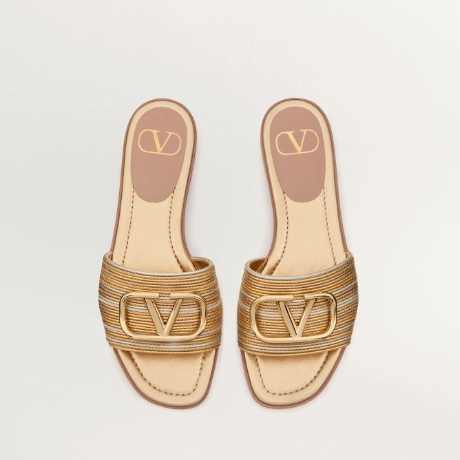 VALENTINO VLOGO SIGNATURE CORNELY Embroidered metallic leather slipper sandals