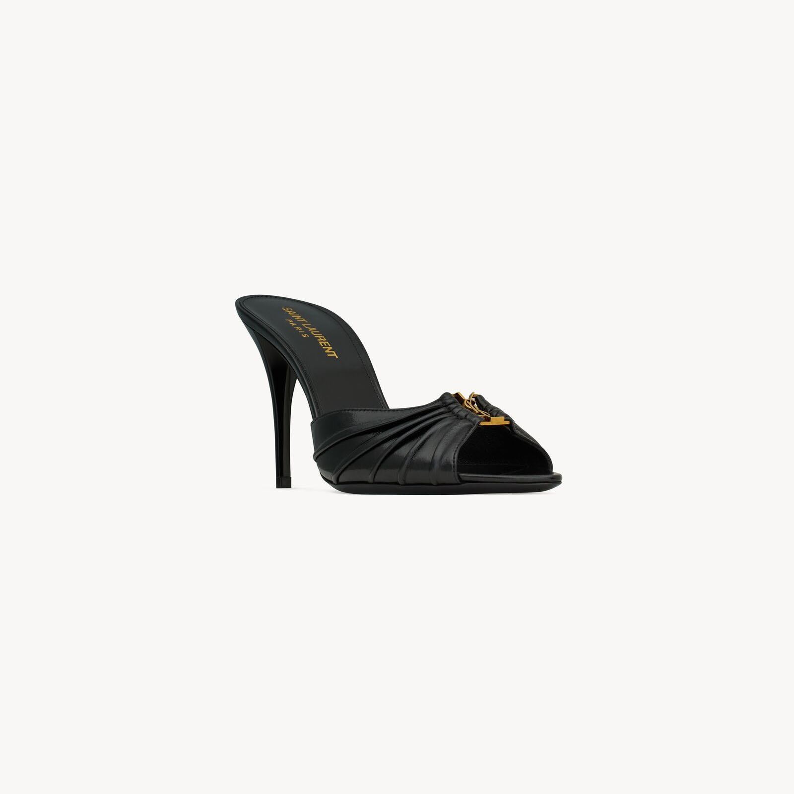 Yves Saint Laurent Black smooth leather pointy sandals high heels slippers