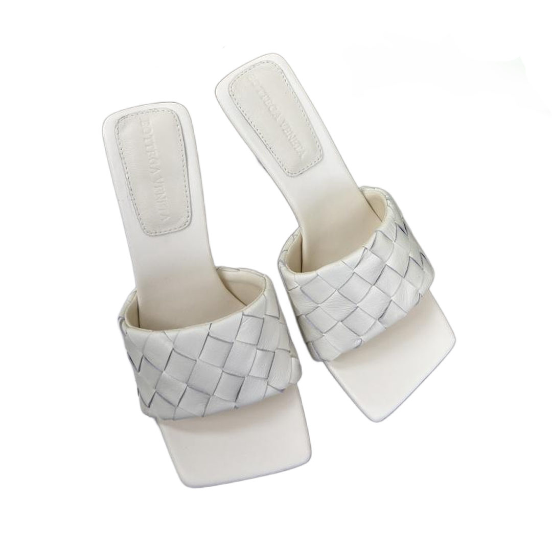 Bottega Veneta Parco Mule In White Intrecciato Leather Mule (Heel Height 9cm)