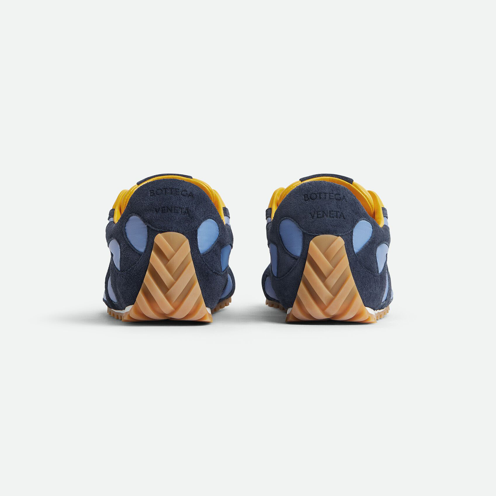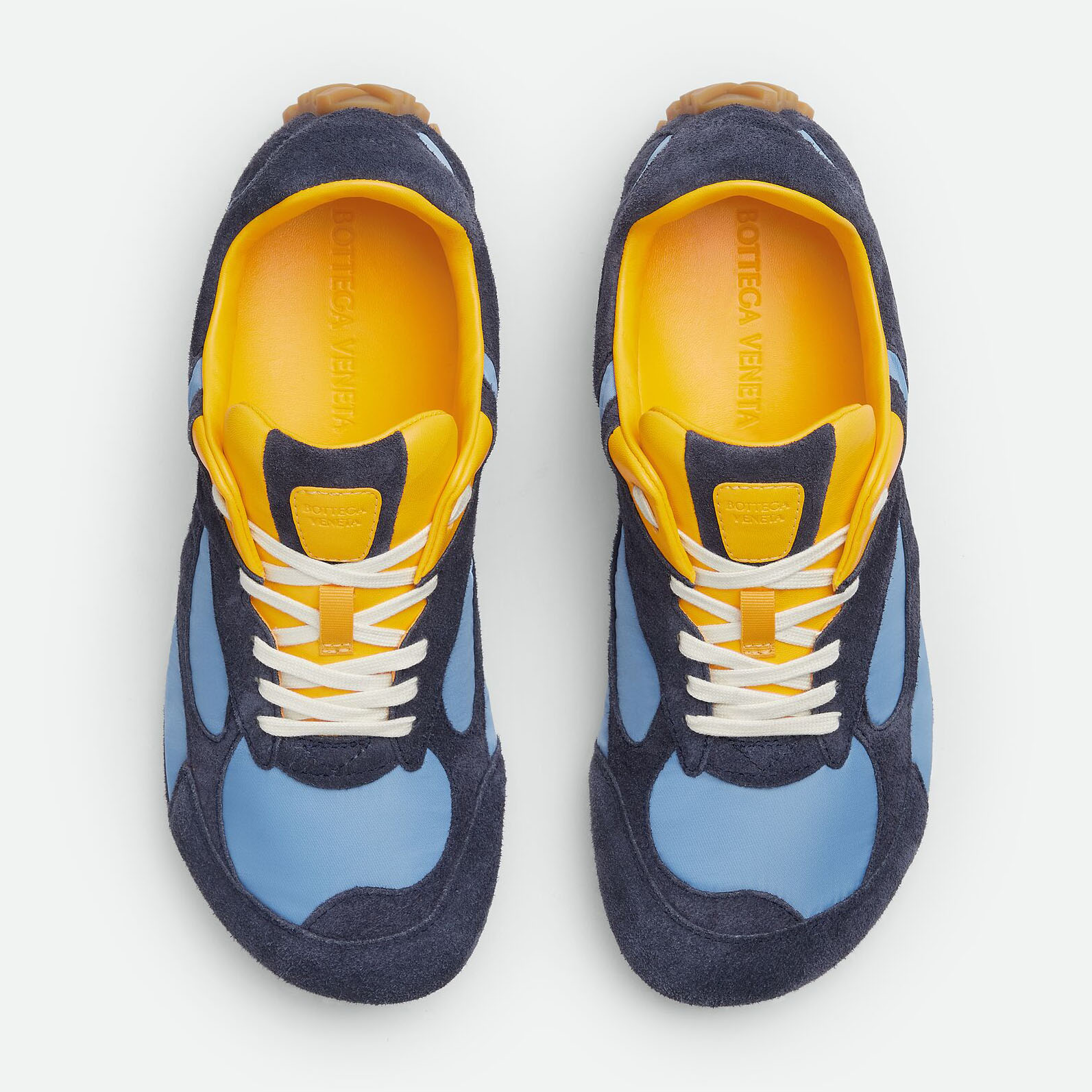 • Bottega Veneta Orbit Flash Sneakers In Blue/Ice/Yellow Suede And Nylon Lace-Up Sneaker With Leather Trims