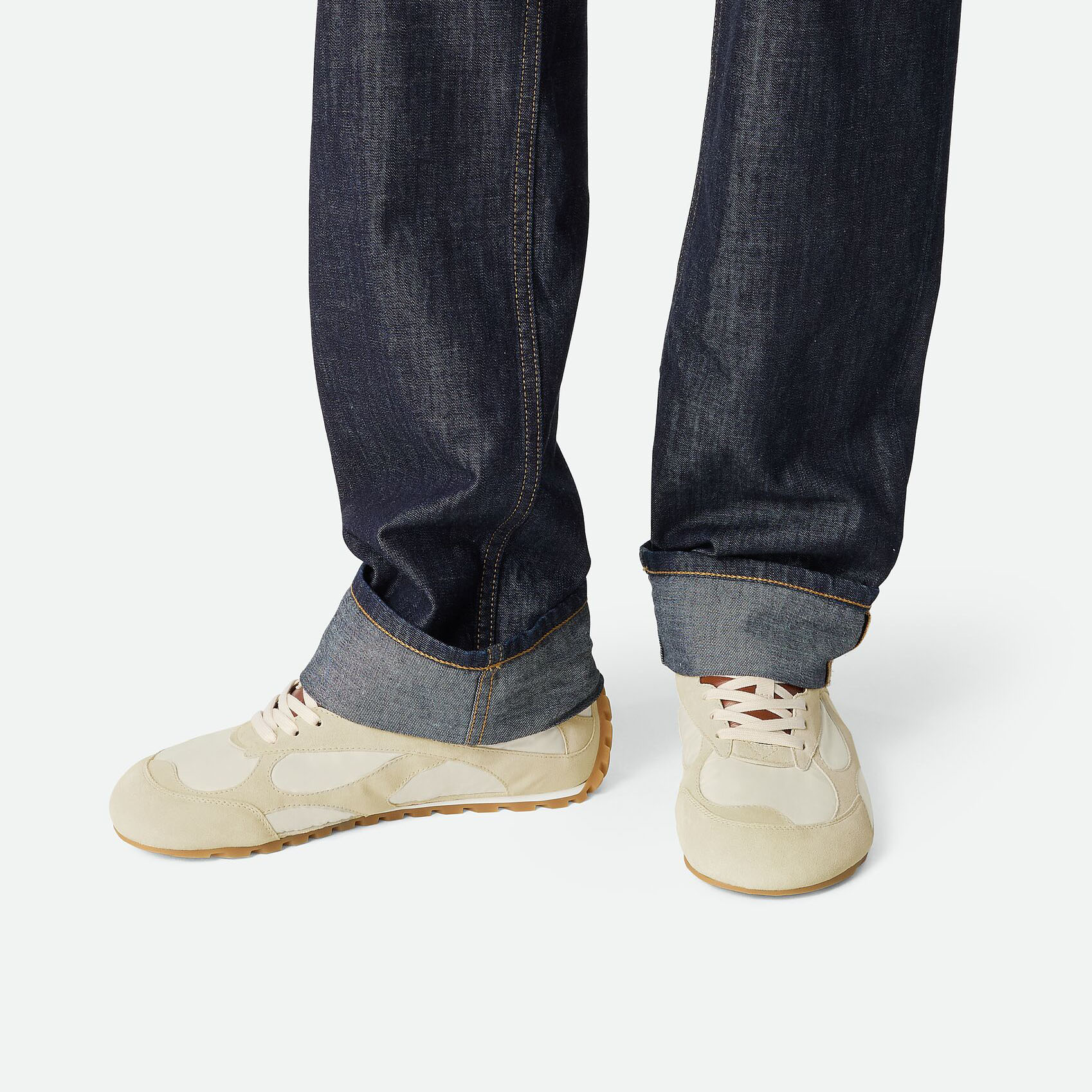 Bottega Veneta Orbit Flash Sneakers In Caramel/Sea Salt Suede And Nylon Lace-Up Sneaker With Leather Trims