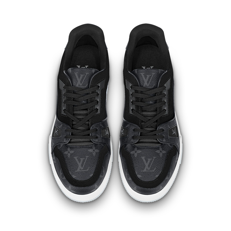 Louis Vuitton Men��s black mesh quilted calfskin LV pattern sneakers