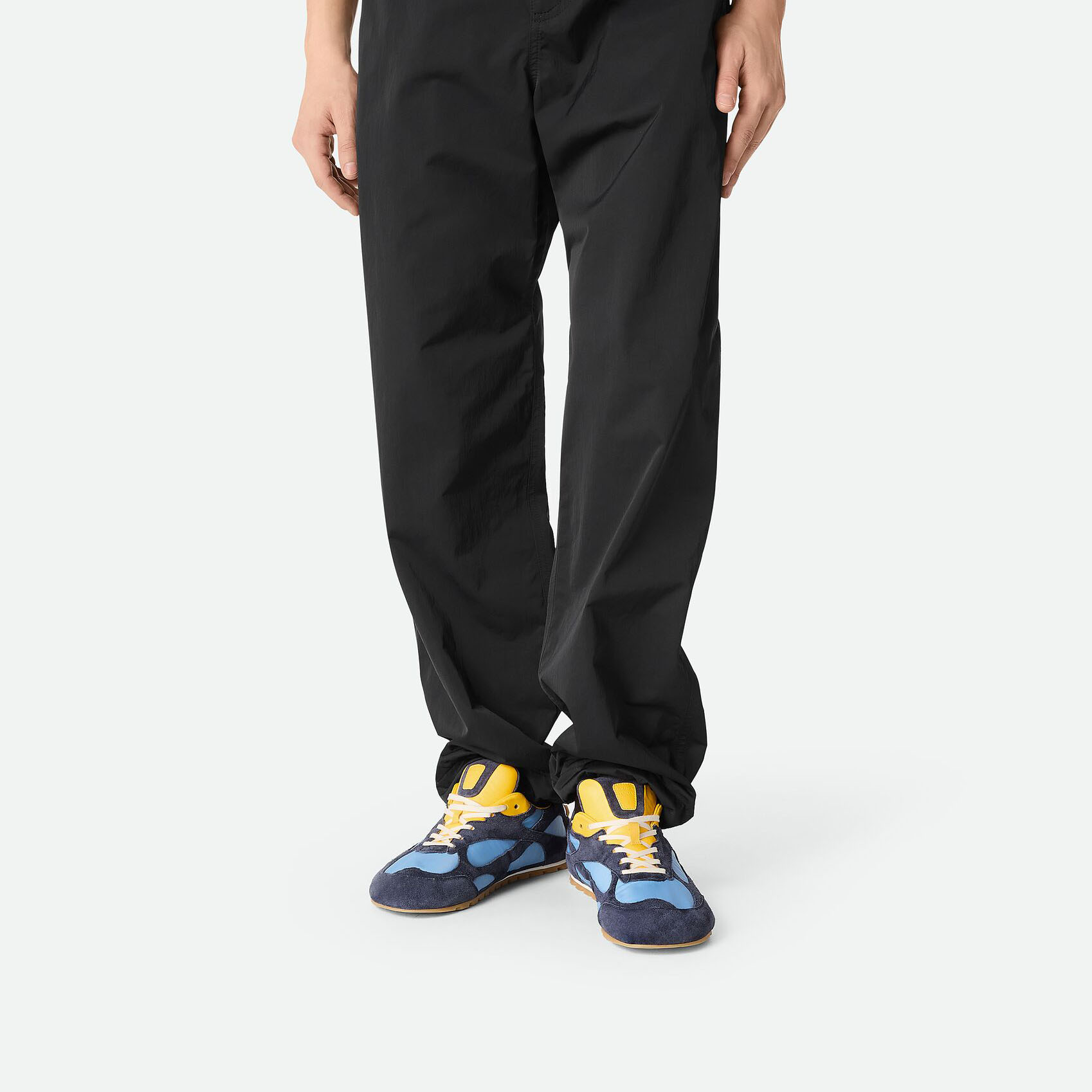 Bottega Veneta Orbit Flash Sneakers In Ice/Black Suede And Nylon Lace-Up Sneaker With Leather Trims