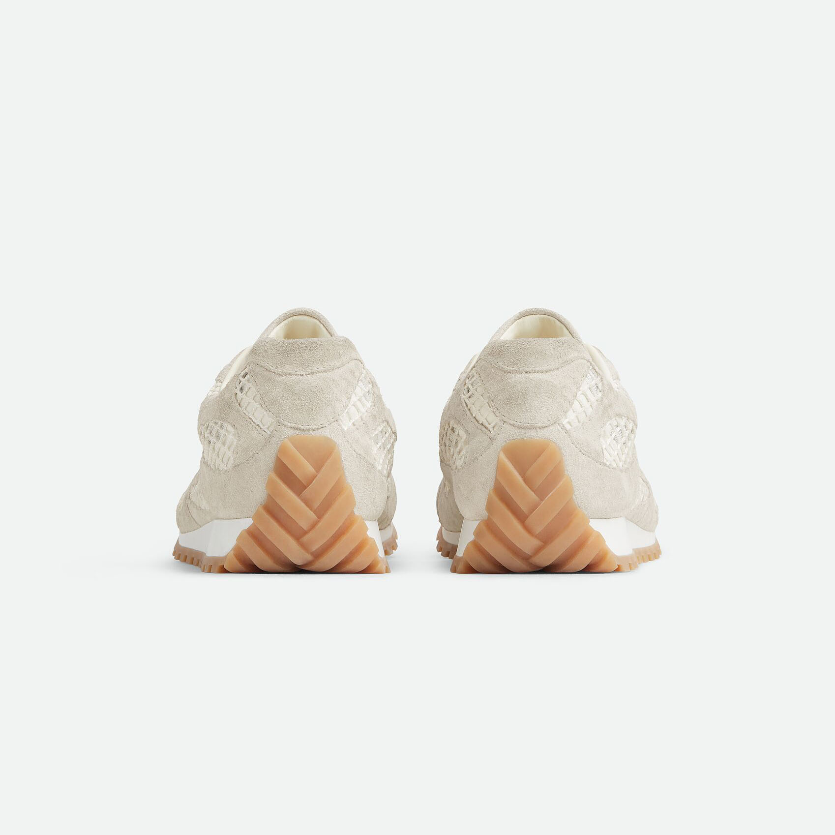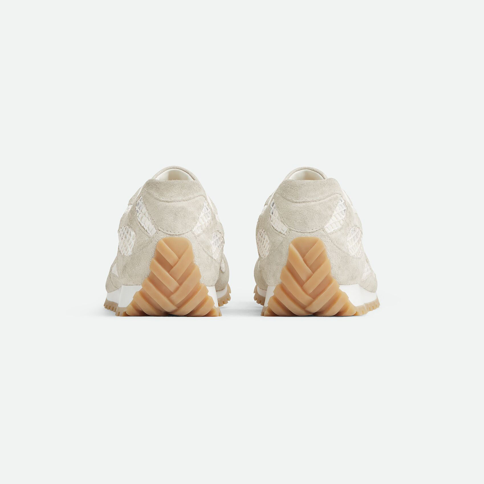 Bottega Veneta Orbit Flash Sneakers In Sea Salt Weathered Suede Leather And Mesh Lace-Up Sneaker