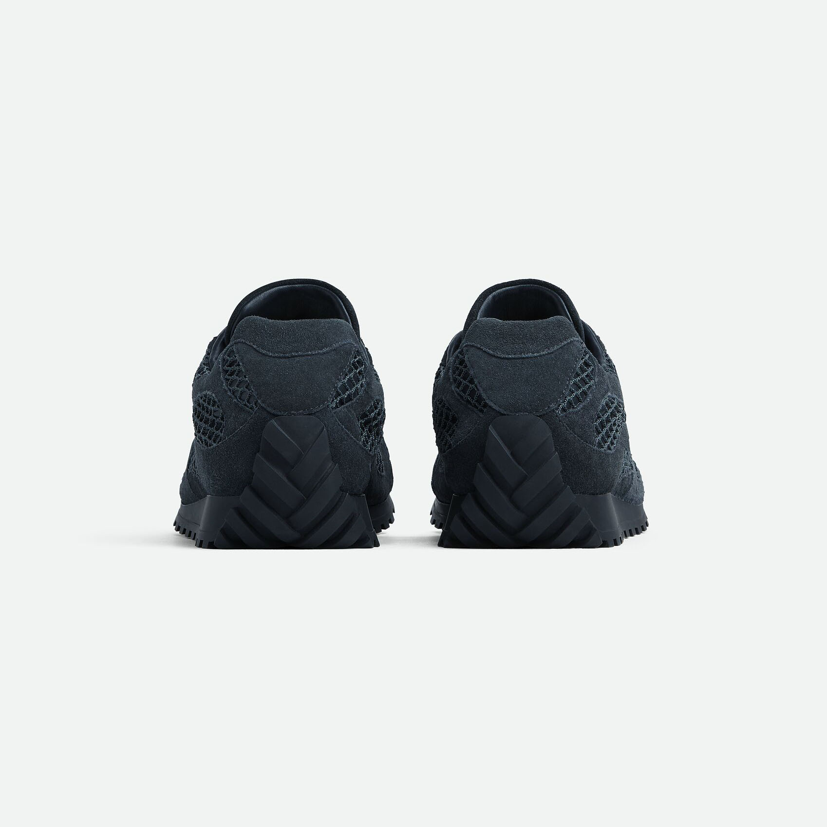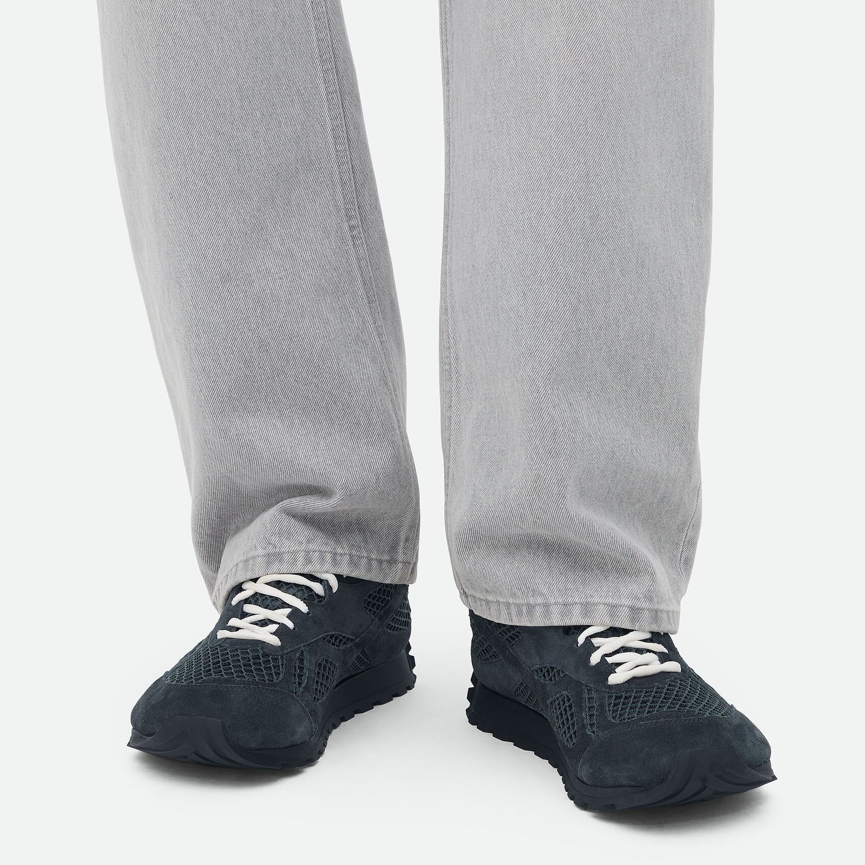 Bottega Veneta Orbit Flash Sneakers In Dark Blue Weathered Suede Leather And Mesh Lace-Up Sneaker