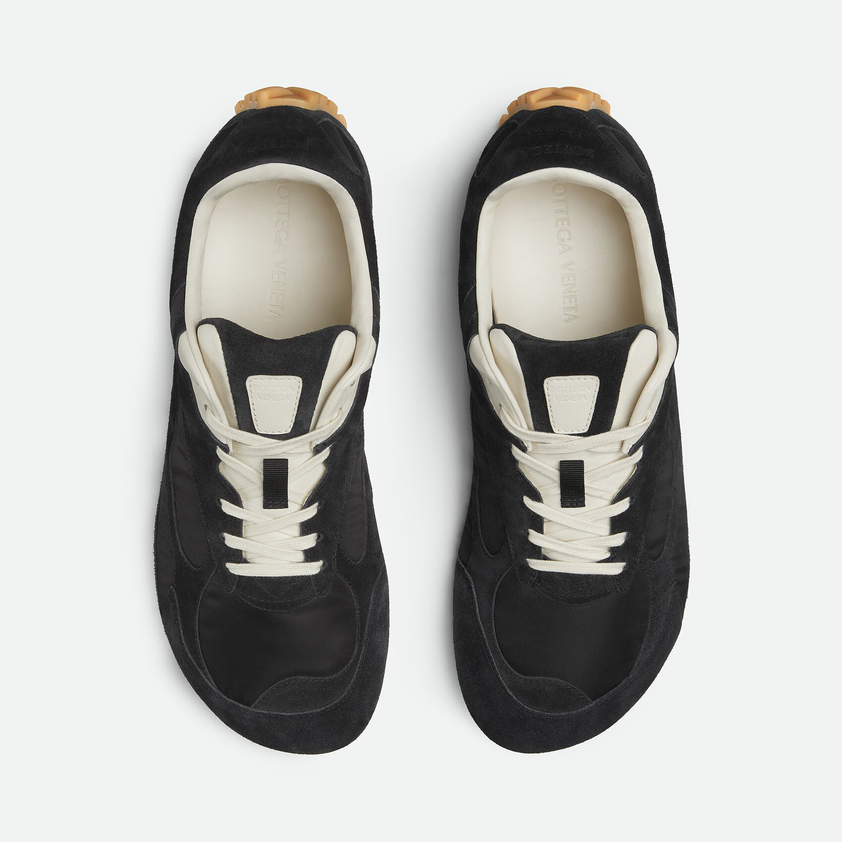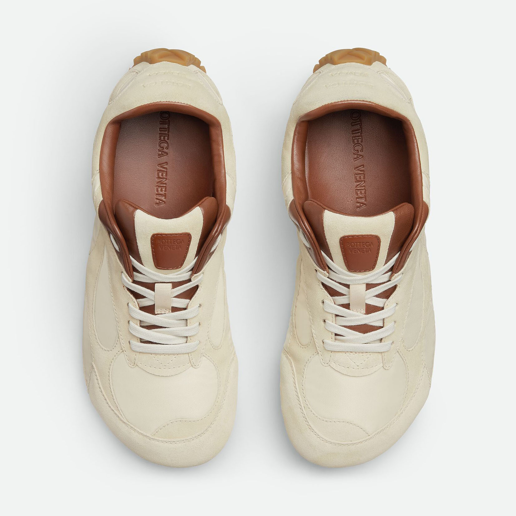 Bottega Veneta Orbit Flash Sneakers In Caramel/Sea Salt Suede And Nylon Lace-Up Sneaker With Leather Trims