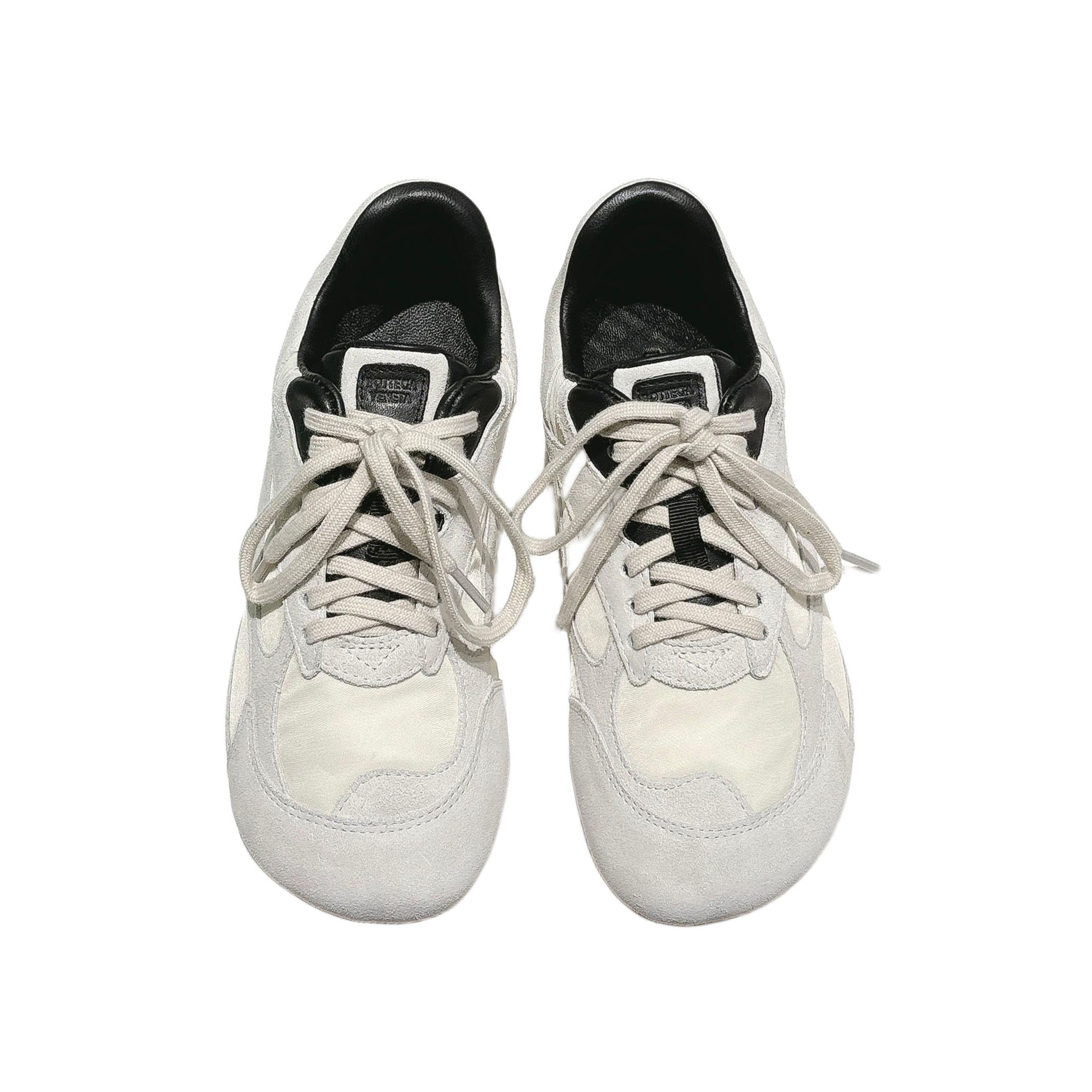 Bottega Veneta Orbit Flash Sneakers In White Weathered Suede Leather And Mesh Lace-Up Sneaker