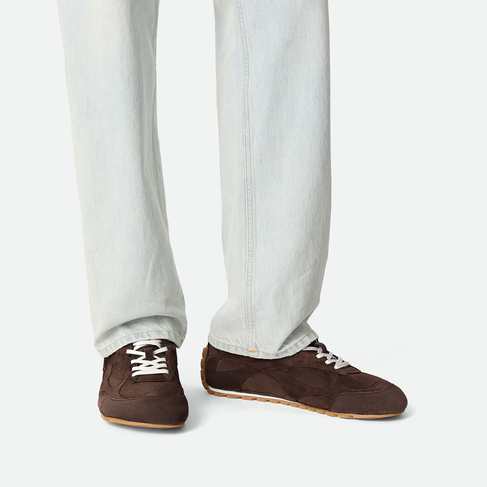 Bottega Veneta Orbit Flash Sneakers In Chocolate Brown Suede Lace-Up Sneaker