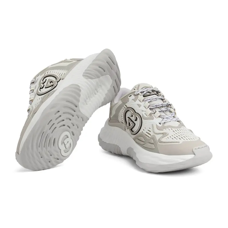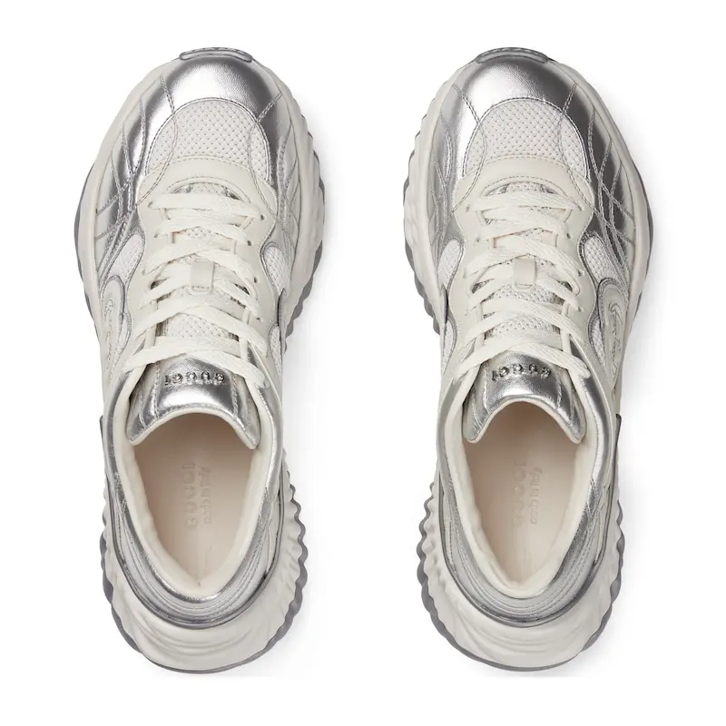 Gucci Ripple series women��s thick soled sports shoes white silver Sneakers