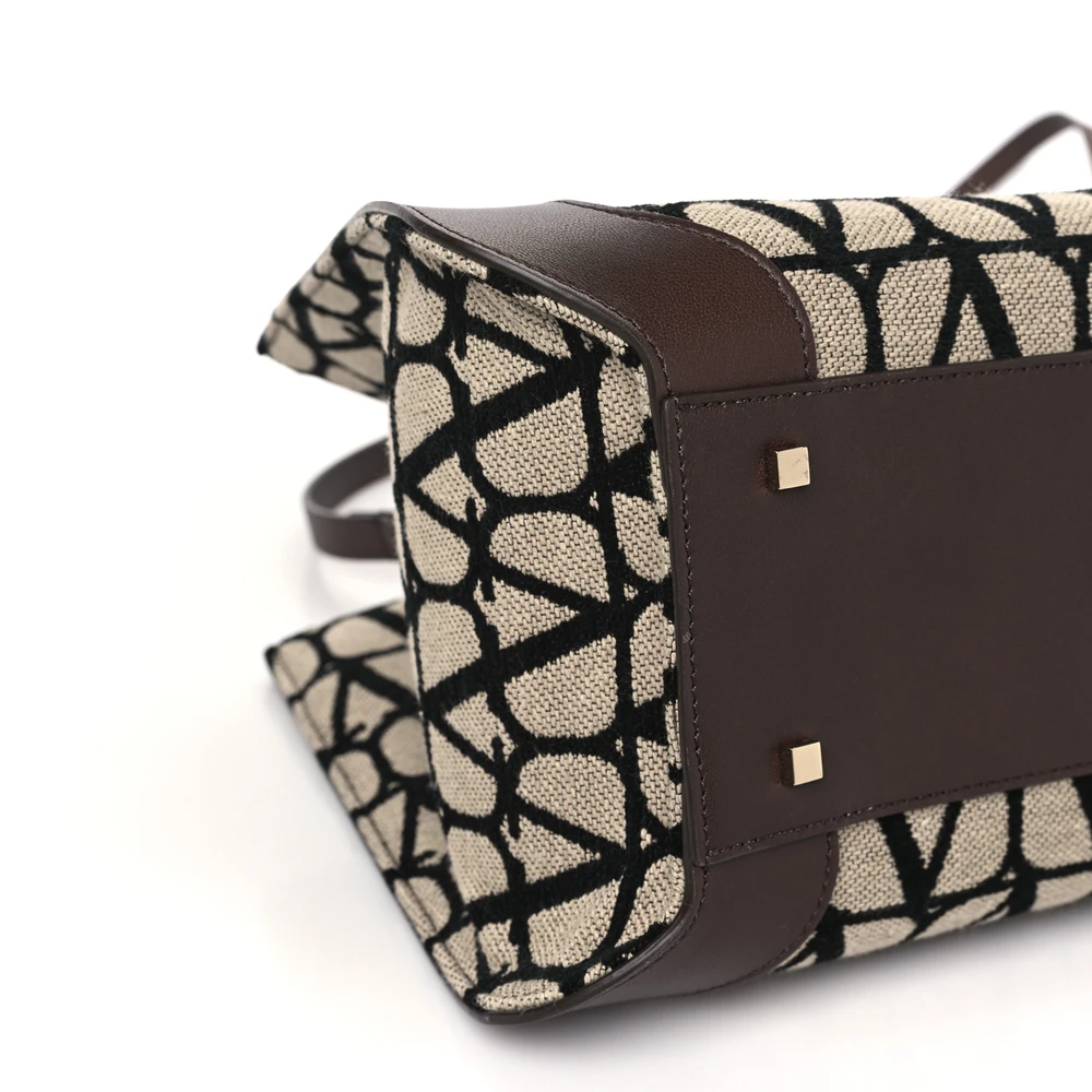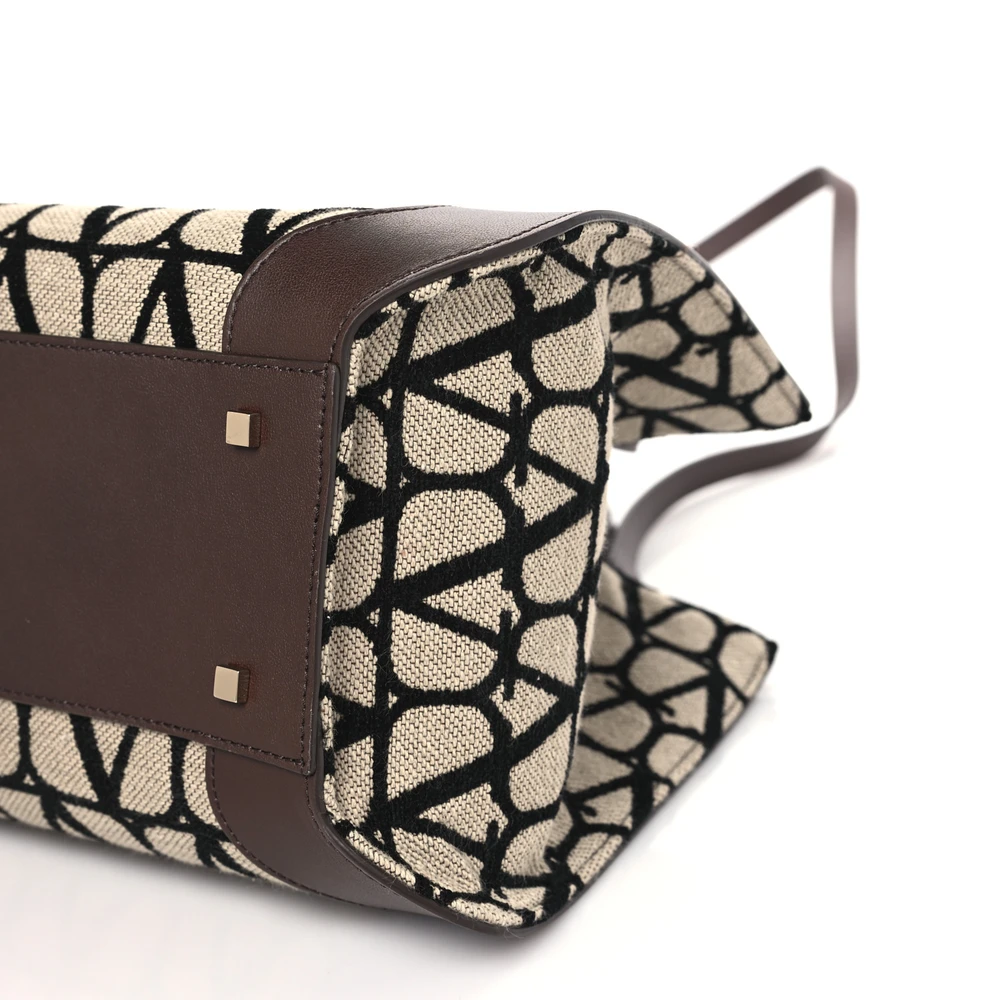 Valentino Garavani Medium VLogo Tote Naturale/Black/Fondant Toile Iconographe Calfskin Leather
