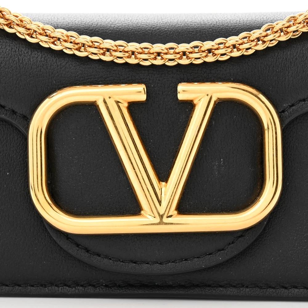 Valentino Garavani Micro VLogo Locò Shoulder Bag Black Calfskin Leather Gold Hardware
