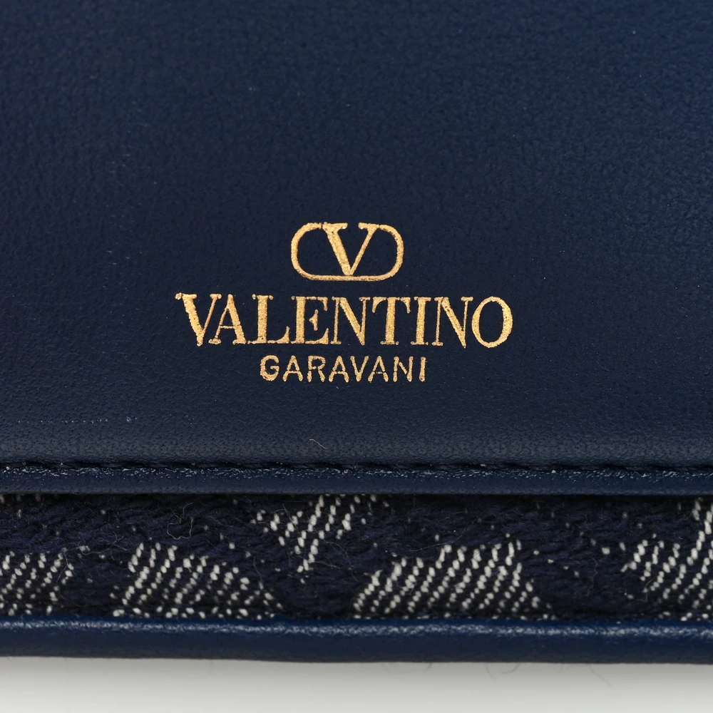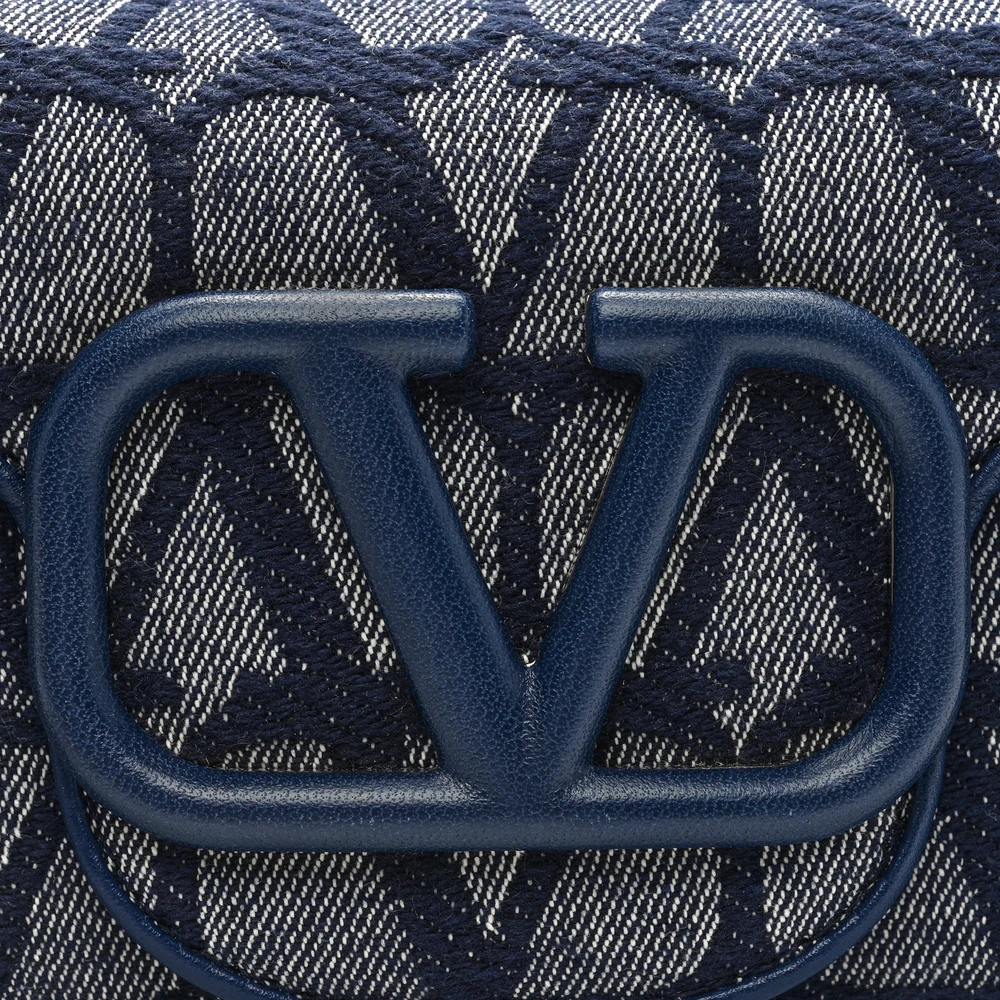 Valentino Garavani Small Locò Shoulder Bag Melange Denim/Worker Toile Iconographe Cotton VLogo Gold Hardware